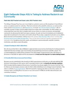 Through broad and inclusive partnerships, AGU aims to advance discovery and solution science that accelerate knowledge and create solutions that are ethical, unbiased and respectful of communities and their values. Our programs include serving as a scholarly publisher, convening virtual and in-person events and providing career support. We live our values in everything we do, such as our net zero energy renovated building in Washington, D.C. and our Ethics and Equity Center, which fosters a diverse and inclusive geoscience community to ensure responsible conduct.